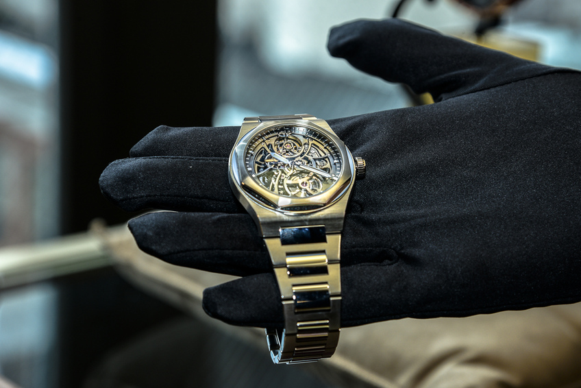 Les invités ont également eu le privilège de découvrir la nouvelle Laureato Squelette, à peine sortie des ateliers de la Manufacture. Dernière évolution de la famille Laureato, entièrement repensée et plus riche que jamais, cette montre à bracelet métallique est un exercice d'architecture horlogère. Girard-Perregaux a puisé dans les origines de la Laureato, dans les inspirations les plus nobles et dans son savoir-faire horloger.