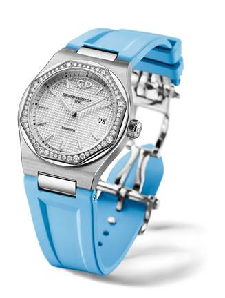 Intended for cultivated women of taste, the Laureato 34 is intensely feminine while conveying all the original brand values. Laureato also stands for pleasing substance and texture, born from a combination of materials including a satin-brushed bezel concealing a polished ring on the equally satin-brushed case middle, thereby creating a subtle set of contrasts. It is also a state of mind: chic steel, sporting elegance and inherent versatility, making it a watch for daily wear in every circumstances.